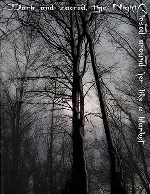 In art it brings out fanciful darker images. I’ve experimented with a blend of photos and photoshop that possibly highlights the Faery presence, or a more mystical feeling from my usual. I hope you enjoy.